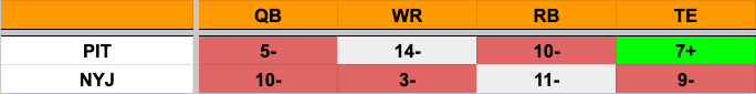 Jonnu Smith, Steelers – The Jets defend TEs fairly well, which caps Jonnu’s appeal. If the Steelers deploy him more as a WR we could be in for a surprise. For now, he’s a mid TE2 option.